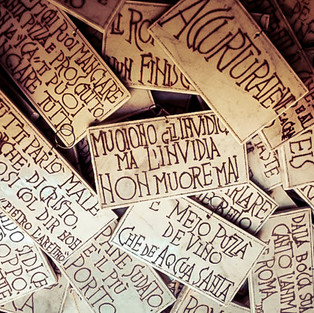 Überall in der Stadt findet man in den Touristenläden kleine Marmortafeln in Bierdeckelgröße. Wer eine individuellere Erinnerung sucht, sollte in die Via Margutta Nahe der Spanischen Treppe gehen. Bei Sandro Fiorentini findet man lustige Sprüche, Redewendungen und Alltagsphilosophien. Und wer etwas Zeit mitbringt, kann seine eigenen Erinnerungen in Marmor gravieren lassen.